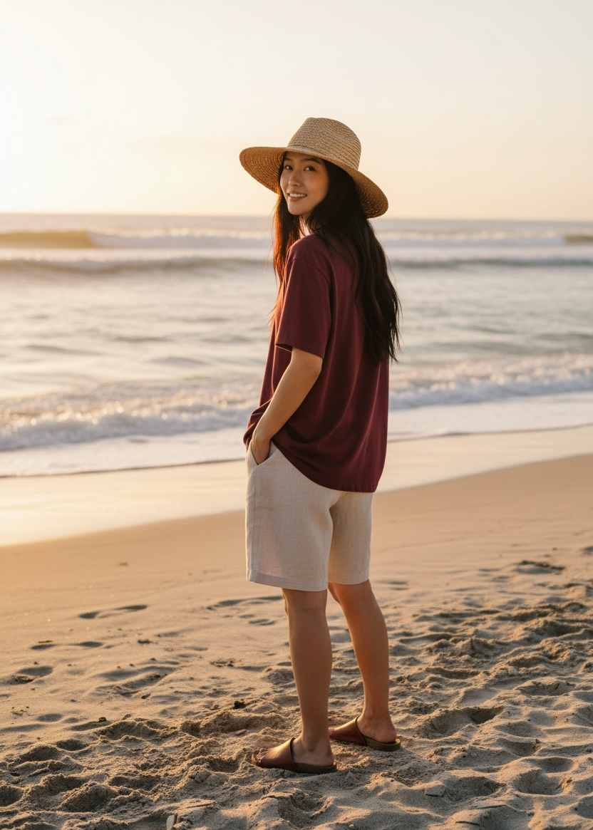 For sewing the T-shirt, lightweight knit fabrics are recommended. It’s best to choose natural and blended materials such as cotton, viscose with elastane, cotton with modal, and cotton with polyester and elastane. Other types of knit fabrics, such as interlock or stretch jersey, are also suitable. These materials provide comfort, softness, and a good fit for the garment.